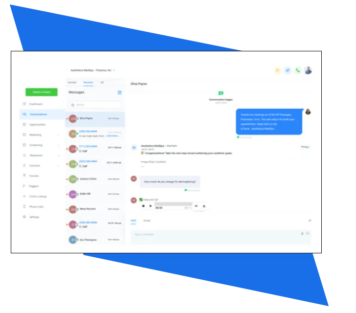 Build websites, funnel pages, and forms to capture new leads. User automated sms, email, phone calls, voicemail drops, and Facebook Messages to nurture those leads through custom pipelines. Converse with leads & clients via text, phone, and Facebook Messenger (all in one stream!), and more!